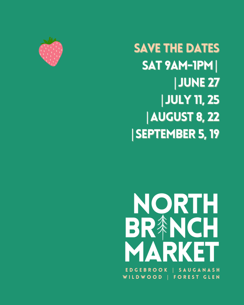 The North Branch Farmers Market will be held at Edgebrook Elementary School, 6525 North Hiawatha Ave, every other Saturday from 9am-1pm starting June 27, 2026. Save the dates and spread the word!